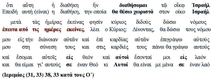 Αγαπητοί αναγνώστες, πρέπει να αποδεχτείτε πως η παρούσα προφητεία δεν αναφέρει επίγειους μεσολαβητές εκτός από τον Κύριο, το Θεό. Μια Καινούρια Διαθήκη, καθιστά από τη μία την προηγούμενη παλιά, από την άλλη δεν είναι απόλυτο ότι την καταργεί, αυτό διακρίνεται κι από τη λέξη «θέτω χωριστά».