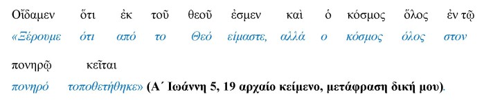 (Α΄ Ιωάννη 2, 16 μετάφραση Καραλή).