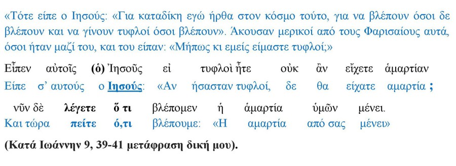 (Κατά Ιωάννην 9, 39-41 παγκόσμιο μεταφραστικό νόημα).