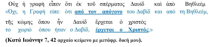 (Κατά Ιωάννην 7, 42 μετάφραση του κατεστημένου).