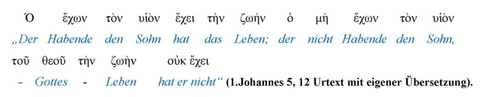 Laut diesem Zitat wird jeder feststellen, dass die meisten Menschen nicht an den Sohn Gottes glauben, aber trotzdem das Leben in sich tragen. Liebe Leser, dies ist nur die halbe Wahrheit. Alle Leugner haben das Leben nur für eine begrenzte Zeit, nicht für ewig. Denn die Bibel, wie in diesem Zitat erkennbar, meint meistens das ewige und nicht das begrenzte Leben. Denn das ewige Leben befindet sich im geistigen Körper, während sich im fleischlichen Körper das Begrenzte befindet. Deshalb steht in der Bibel, Seele und Herz eines Menschen in der Mehrzahl, weil ein Mensch aus zwei Körpern besteht. Nämlich dem Geistigen und dem Fleischlichen. Es versteht sich auch als innerer und äußerer Mensch. Ausführlicheres zum Thema über den inneren und äußeren Menschen steht im Beitrag: „Das Geheimnis“.
