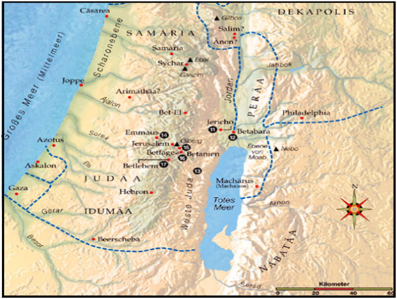 Also bestätigt die Heilige Schrift, dass Betanien etwa 3 Kilometer vor Jerusalem westlich des Jordans liegt, nicht im Osten, wie des Religiosen Systems Fehlübersetzungen überzeugen wollen.