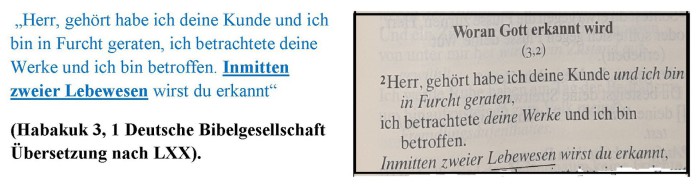Außerdem steht im Urtext nicht „deine Kunde“ sondern, „dein Gehörtes“. Das heißt, der Prophet Habakuk sprach erstens nicht direkt den Herrn an und zweitens er konnte mit hören durch den Sohn. So eine Äußerung ist nicht die einzige in der Bibel: